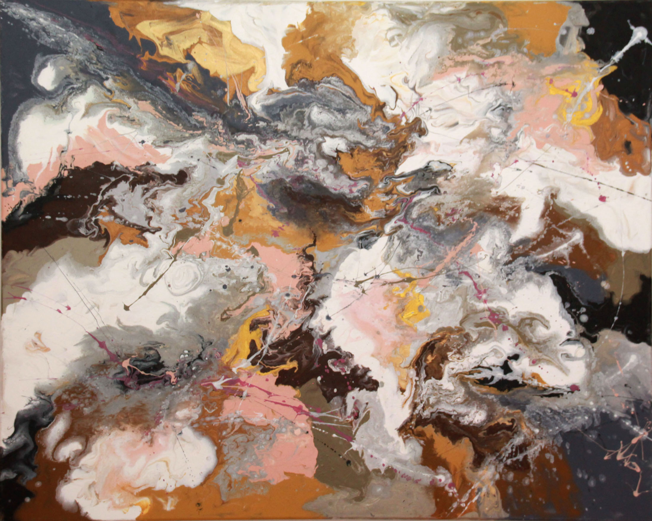 Die Farben werden etwas verdünnt, damit sie leichter und fließender werden. Dann liegt es an der Hand des Künstlers, was daraus entstehen kann. Allein durch den Farbfluss und die Bewegung kommt es zu einem einzigartigen Ergebnis das nicht wiederholt werden kann.